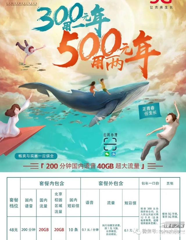 套餐资费:月租20元=20G通用流量+20G北京本地+200分钟通话+10条短信